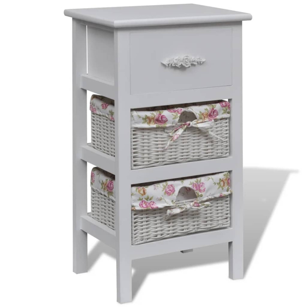 vidaXL Byrå med 1 låda och 3 korgar vit paulownia 241543