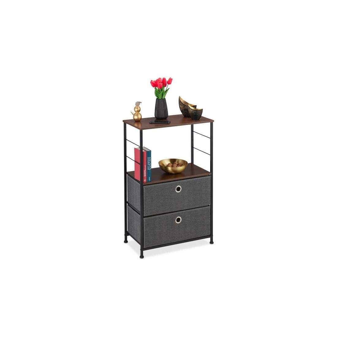 Relaxdays byrå, 4 lådfack, med hylla, 4 hopfällbara korgar, tyg, stålram, 79 x 58 x 31,5 cm, brun