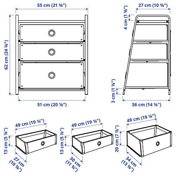 IKEA LOTE Byrå med 3 lådor 55x62 cm