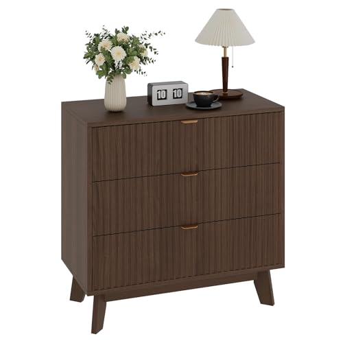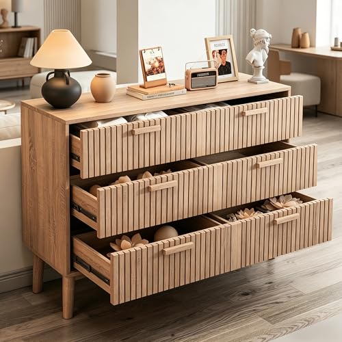 Garvee Modern räfflad byrå med 3 lådor - böjd förvaringslåda och TV-bänk - multifunktionellt träförvaringsset för vardagsrum, sovrum, hall, elegant heminredning