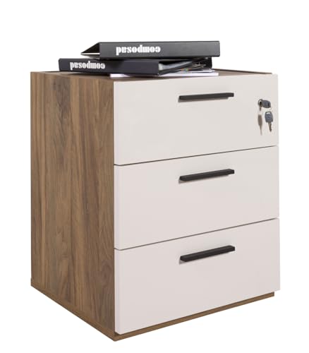 Composad | Byrå med 3 lådor, hjul och lås från LAPIS-linjen, modern, rymlig byrå (B x H x D), 50 x 61,2 x 47,2 cm, färg valnöt Brera och kashmir, tillverkad i Italien