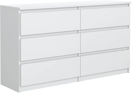 MebLocker byrå med 6 lådor 120 cm, perfekt för vardagsrum, sovrum, barnrum, ungdomsrum och kontor, modern elegant lösning för snygg förvaring och organisering (vit)