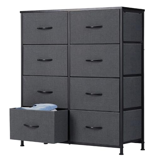 Byrå skänk med 8 vikbara tyglådor, lådskåp med bänkskiva, handtag, multifunktionsskåp med lutningsskydd, för vardagsrum, sovrum,