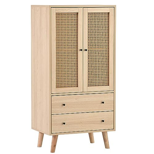 Rotting design skänk byrå med 2 rottingdörrar och 2 lådor, ståskåp köksskåp förvaringsskåp buffé med gott förvaringsutrymme för kök matsal vardagsrum, träfärg, 60 × 40 × 120 cm