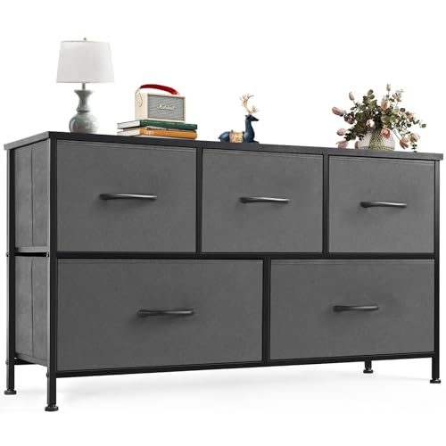 Sweetcrispy byrå, skänk, vardagsrum för sovrum med 5 tyglådor, justerbara fötter lådskåp, komodenskåp för sovrum, modernt grått