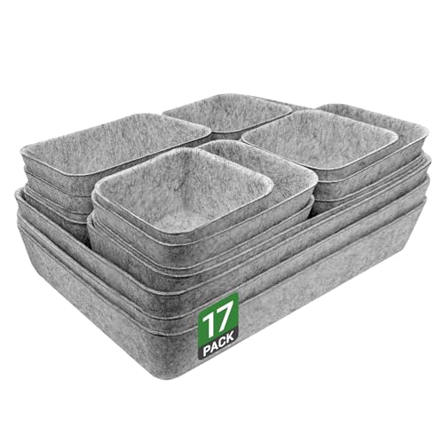 Captainfive 17 stycken lådor organisatör för 108 cm byrå, stapelbara förvaringsboxar i filt, lådor organisationssystem för skrivbord, toalettbord, nattduksbord, skåp (ljusgrå)