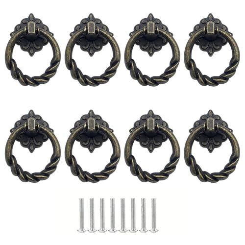 JaneYi 8 stycken vintage brons lådhandtag – möbelknoppar ring handtag draghandtag byråhandtag retro för möbler skåp byrå