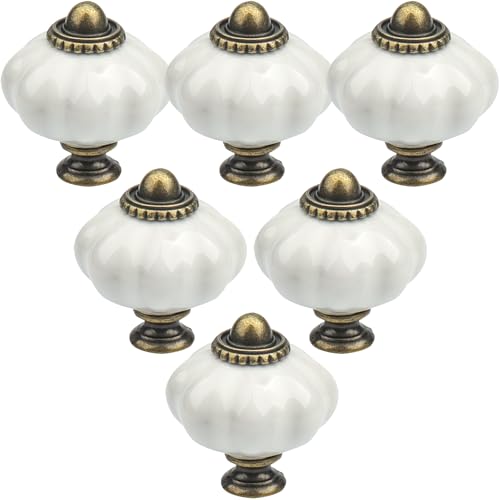 Cjueiom 12-pack keramiska dörrknoppar vita lådknoppar, pumpa keramiska knoppar vintage skåpknoppar med monteringsskruvar, antika garderobsdraghandtag köksskåpsknoppar för byrå
