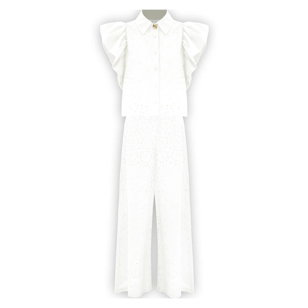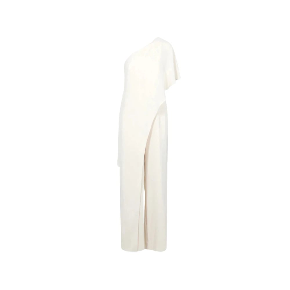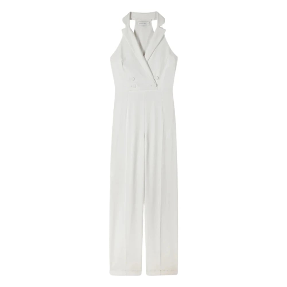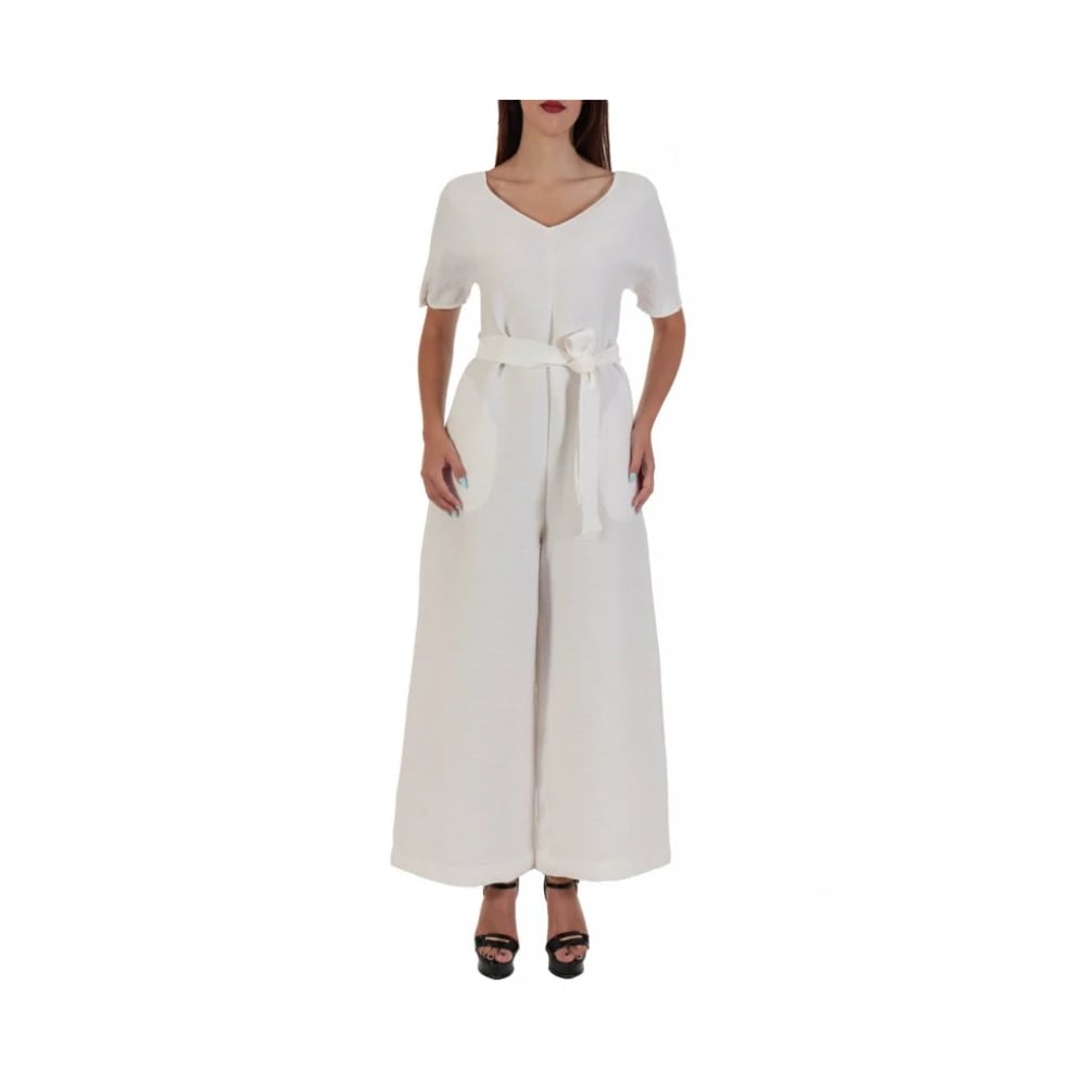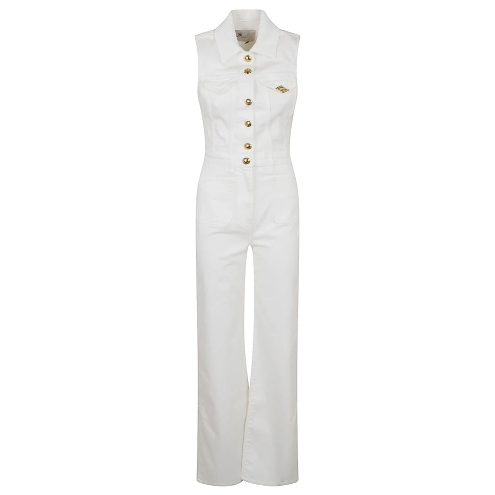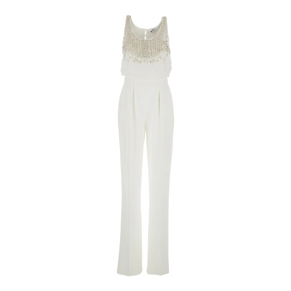 Elisabetta Franchi, Byxdress , Dam, M, Vit Jumpsuit med Rhinestone-applikation