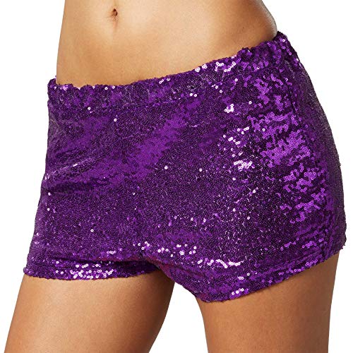 dressforfun 900996 dam paljett glitter heta byxor, sexiga shorts, lila - olika storlekar - (XL | nr 303924)