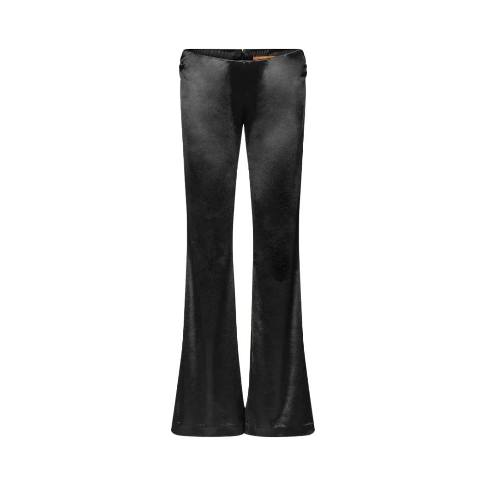 Stine Goya, Byxor , Dam, S, Polyester, Glänsande Byxor med Låg Midja och Flare Ben