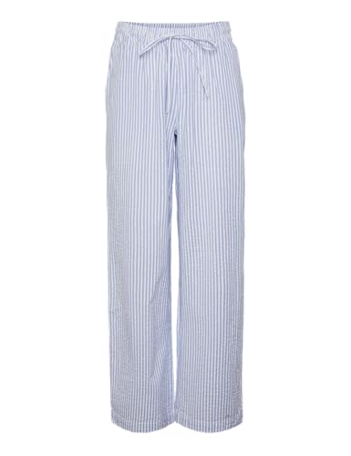 PIECES dam Pcapia Hw Wide Pants mm byxor, Coronet blå/ränder: ljus vit, XL