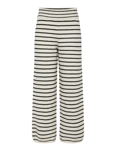 PIECES Dam Pcniannah Hw utsvängda byxor tygbyxor, svart/ränder: Cloud Dancer, XL, Svart/ränder: molndansare., XL