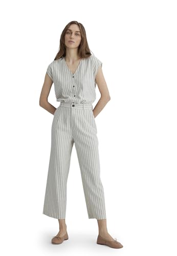 VERO MODA Vmmindy MW Linen Dad Pant Mix Noos byxor, kalamata/ränder: ren sten, 38W x 30 L dam, Kalamata/ränder: ren sten, 38W x 30L