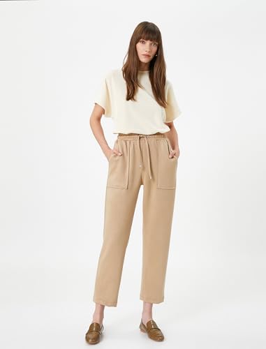 Koton dam ficka detalj mocka look dragsko byxor byxor, Beige (059), 38