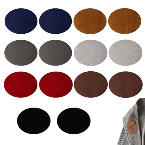 14 stycken lappar för strykning, 11 × 14 cm oval armbåge mocka lapp, lappar självhäftande kläder, plagg inomhus utomhus, stryk-lappar för jackor, väskor, byxor (flerfärgad)