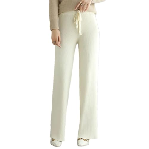 Dam vinter merinoull stickade byxor kontor hög midja rakbyxor kashmir ull tjocka stickade byxor, Vitt, XXL