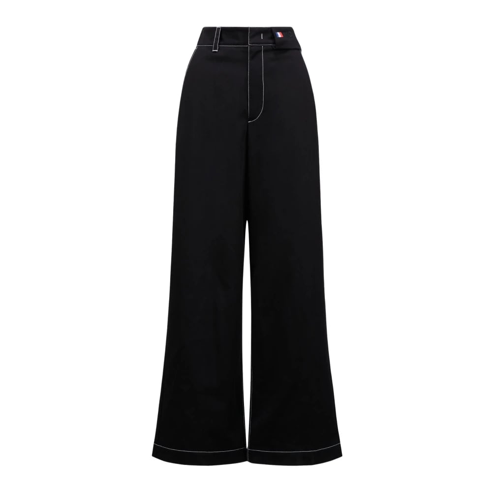 Moncler, Jeans , Dam, XS, Bomull, Högmidjade byxor med vida ben och kontrastsömmar