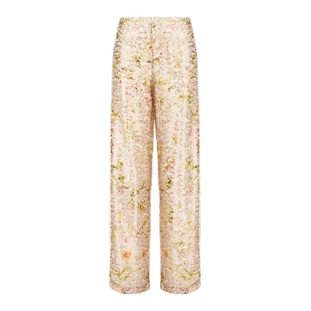 Alberta Ferretti, Byxor , Dam, M, Polyester, Tryckta, paljettprydda byxor med vida ben