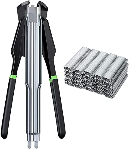 QWORK® Hogring tång automatisk stängningssats C-typ klämma stängsel tång med 2500 st galvaniserade staket gris ringar för trådnät husdjursburar bilmadrasser
