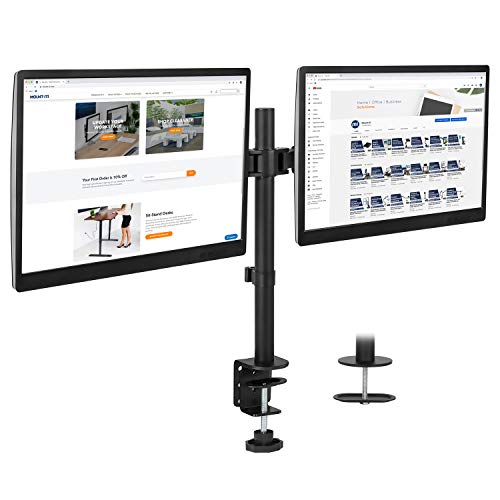 HEMUDU Dubbel bildskärm och rörlig skrivbordsstativ – vertikal staplad skärm, stöder två 13 till 34 tums datorskärmar med C-klämma