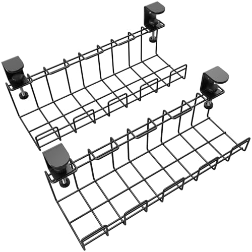 KD Essentials – 2x kabelkorg av metall, storlekm 2-pack – klämbar kabelhållare, skruvfri fastsättning (bordshållare/C-klämma för bordsmontering, förvarar kablar och grenuttag, svart)