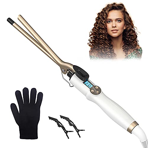 9MM Locktång för små definierade lockar, AIMERVO 11 värmelägen 110-210°C krølltang med klämma, Keramisk-tourmaline beläggning,30 sekunders uppvärmning, krøllstav automatisk avstängning,skyddshandskar