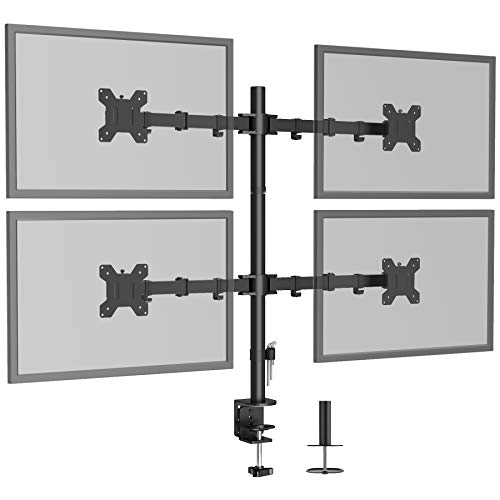 BONTEC Quad Monitor Arm för 13-27 tum Bildskärmar, Full Motion Skärmstativ för Fyra Skärmar, VESA 75x75/100x100, Ergonomiskt Höjdjusterbart med C-klämma och Grommet Montering, Max 10kg/Arm