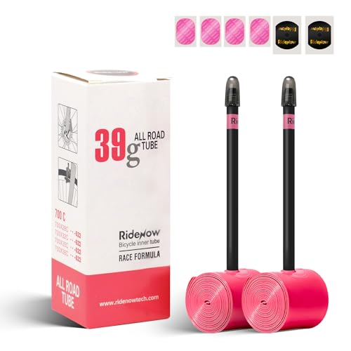 RideNow 700C TPU cykelslang kompatibel med 700 x 18/23/25/28C, 2-pack 24 g ultralätt racercykelslang med 85 mm Presta-ventil av metall