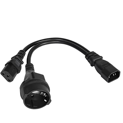 C14 till C13+CEE 7/7 Y Splitter strömkabel YACSEJAO IEC 320 C14 till C13, datorns jorduttagsförlängning, bildskärm (1FT/30 cm)