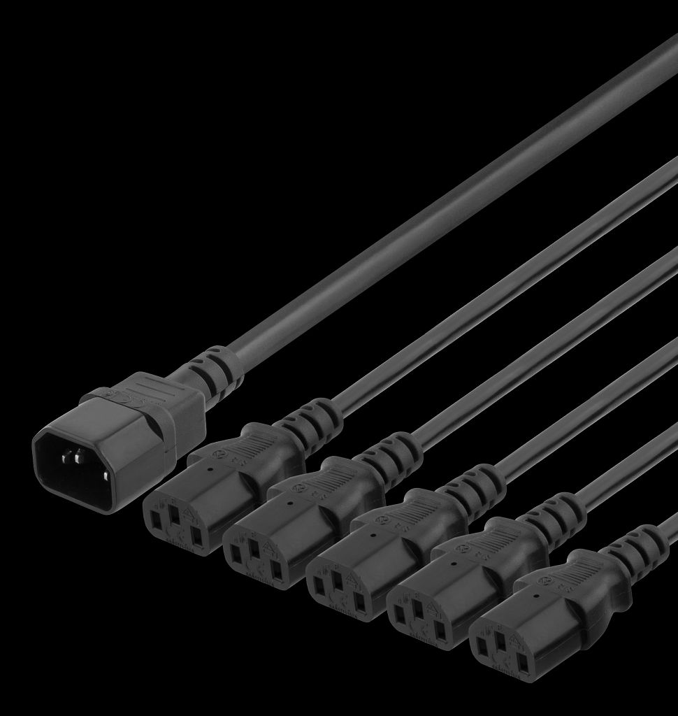 IEC C14 till 5x IEC C13 strömkabel Y-splitter, 1m, 10A/250V – Svart