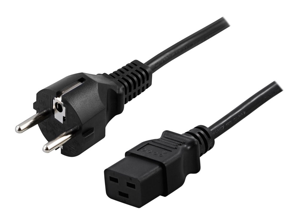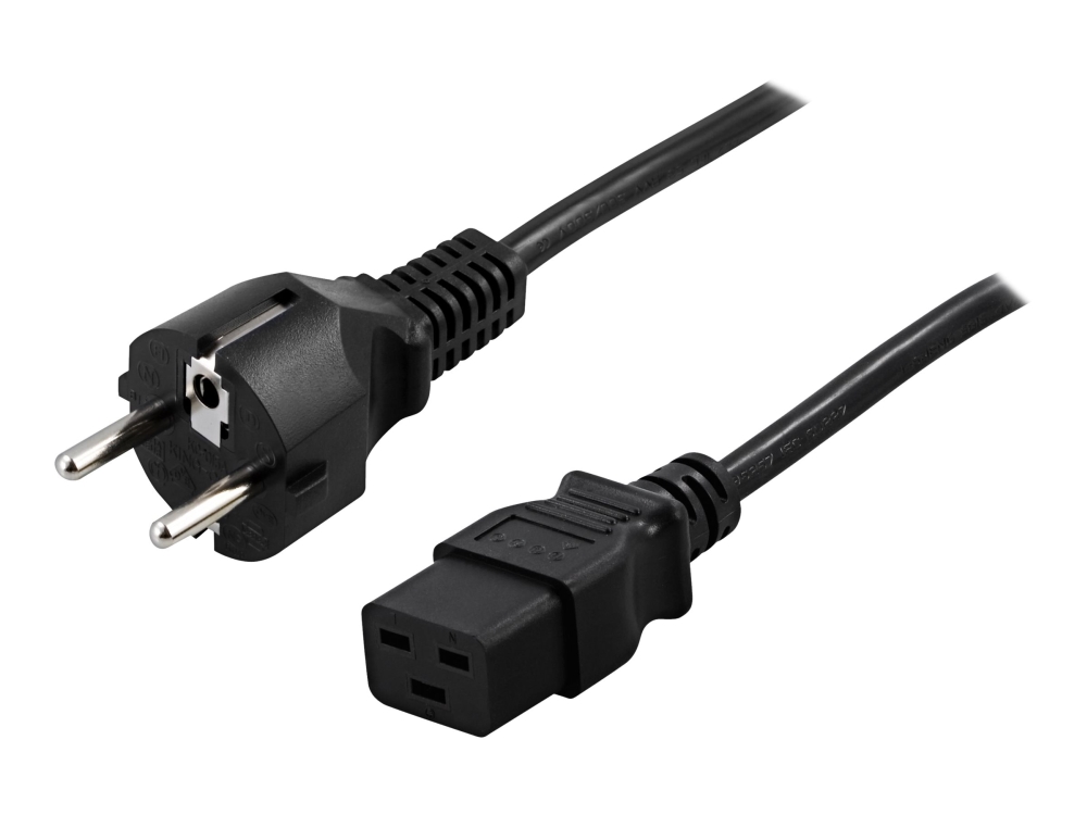 Deltaco - Strömkabel - Ström Cee 7/7 (Han) Till Iec 60320 C19 - Ac 250 V - 16 A - 3 M - Lige Stikforbindelse - Sort