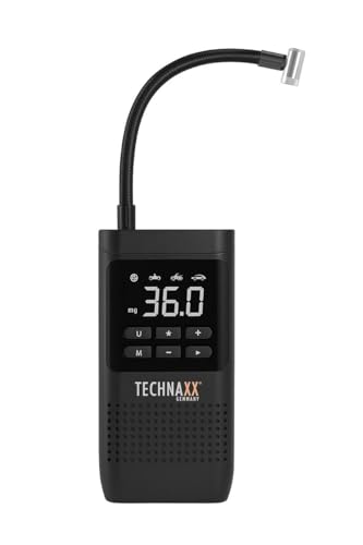 Technaxx TX-321 Digital Bilkompressor – 10 Bar, LED-display, 4000mAh Powerbank, USB-C, 4 lägen, Automatisk avstängning – Portabel Däckpump för Bil, Cykel, Boll med LED-lampa & Adaptrar