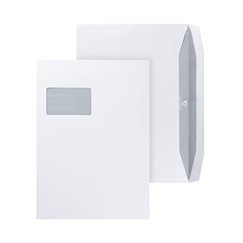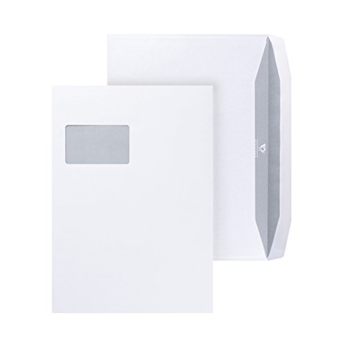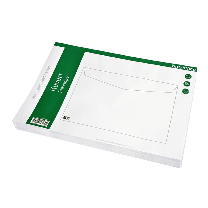 50 st. kuvert C4 A4 vit, med fönster, självhäftande, med remsor, chiffongstruktur-tryck 120 g/m, format 229 x 324 mm kuvert, fraktpåse, kuvert, butik