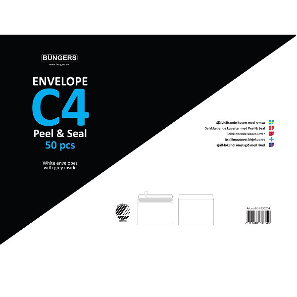 Kuvert C4 vit självhäftande | toppöppning | Büngers 50st⭐