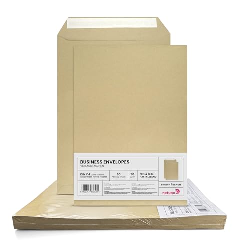 50 st DIN C4 bruna kuvert 229×324 mm självhäftande flik utan fönster 90 g stort format för företagsbokstäver fakturor