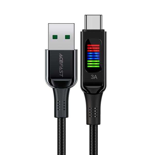 Acefast C7-04 USB-A till USB-C kabel 60W 1.2m med display - svart