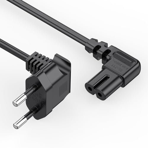 GlasFlength Stromkabel Netzkabel 2 Polig, 90°Winkelstecker Eurostecker Typ C Netzstecker Auf Buchse C7 Euro 8 Stecker 3M Netzteil Kabel för TV PC Monitor, PS5, Lautsprecher Drucker USW (svart)