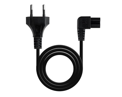 deleyCON 2m Strömkabel Elsladd Ström Kabel Kontakt Typ C Eurokontakt till C7 Uttag 90° Vinklad Euro-Strömkabel Småapparatkabel Euro 8 TV Blu-Ray Hushållsapparater Nätaggregat - Svart