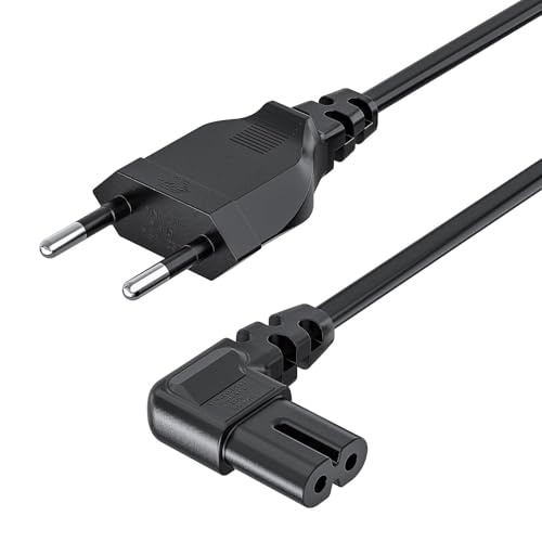 Sonero 2-stifts strömkabel, 3,0 m, Euro nätverksuttag typ C till IEC-kontakt C7 Euro 8-kontakt, 90° vinklad adapter strömkabel för TV, PS5, PS4, PS3, svart