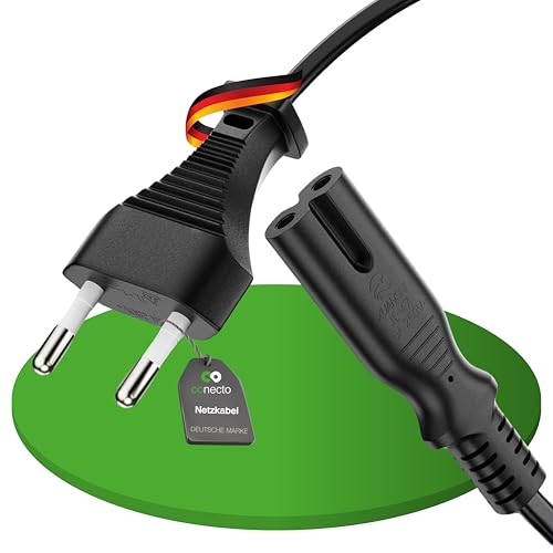 conecto strömkabel, Euro rak kontakt till IEC C7 rak kontakt, Euro-strömkabel för hushållsapparater, 5,00 m, svart