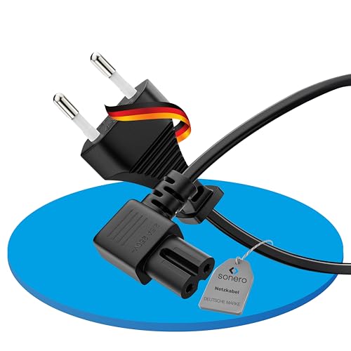 Sonero Strömkabel 2-Polig, 1,50 m, Eurokontakt Typ C Till IEC Uttag C7 Euro 8-Kontakt, 90° Vinkel För TV, PS5, PS4, PS3, Hushållsapparater, Svart