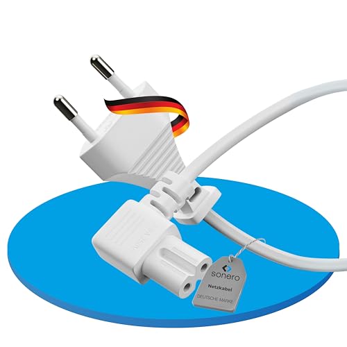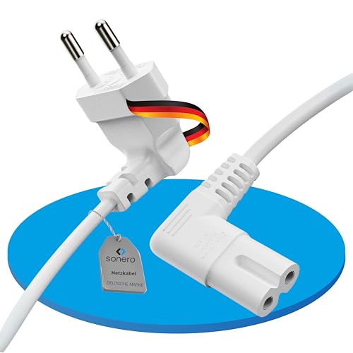Sonero Strömkabel 2-Polig, 1,0 m, Eurokontakt Typ C Till IEC C7 Euro 8-Kontakt, 90° Vinkel För TV, PS5, PS4, PS3, Hushållsapparater, Vit