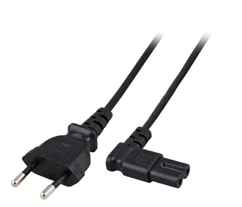 deleyCON 3,0m Nätkabel Strömkabel, Kontakt Typ C Eurokontakt till C7-Uttag 90° Vinklad, Euro-Nätkabel Småapparatkabel Euro 8, TV Blu-Ray Hushållsapparater Nätadapter - Svart