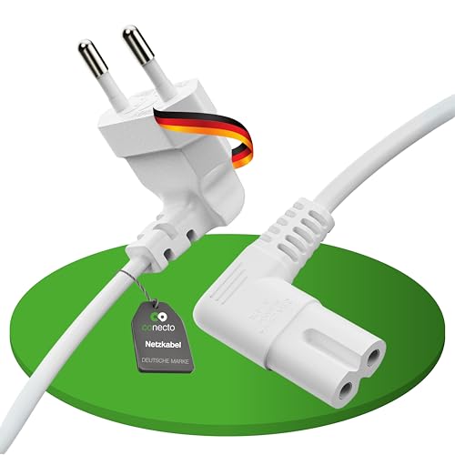 Sonero strömkabel 2-polig, 3,0 m, eurokontakt typ C till IEC uttag C7 Euro 8-kontakt, 90° vinkel strömförsörjning för TV, PS5, PS4, PS3, hushållsapparater, vit