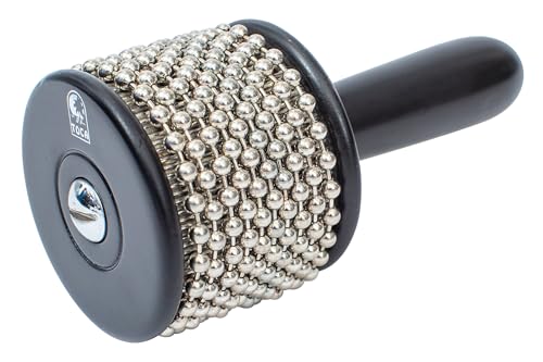 Meinl Percussion Turbo Cabasa instrument – medelstort skakinstrument med pärlkedja – med ljudportar – trä/rostfritt stål, svart (CA5BK)