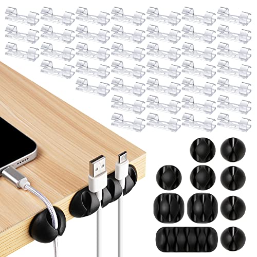 URAQT Cable Clip Organizer Set, 50 st Cable Management Organizer, Självhäftande Trådorganisator för Hemmakontor, Kabelhållare för Strömkablar, Laddningskablar, Muskablar