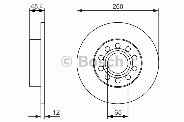 Bromsskiva Bosch - VW - Golf, Caddy, Golf v, Touran, Cross-touran, Jetta v. Skoda - Octavia, Superb, Octavia scout. Audi - A3. Seat - Altea freetrack