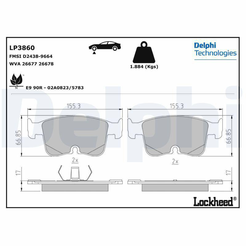 Bromsbelägg Delphi - VW - Golf, Caddy. Audi - A3