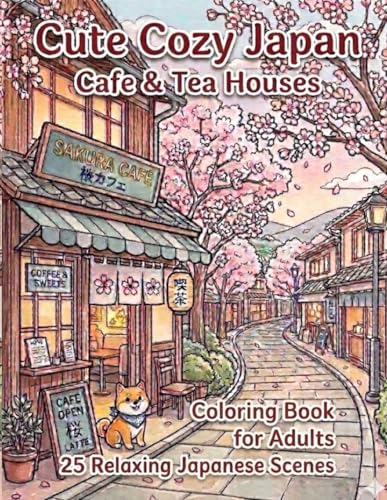 Cute Cozy Japan Cafe & Tea Houses: Coloring Book for Adults 25 Relaxing Japanese Scenes